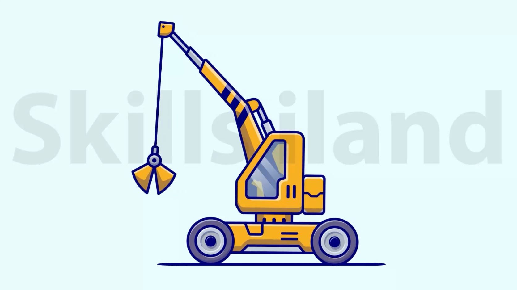 A yellow crane is moving around. Designed in Adobe After Effects 2020, the animation is in 1920 x 1080 resolution.