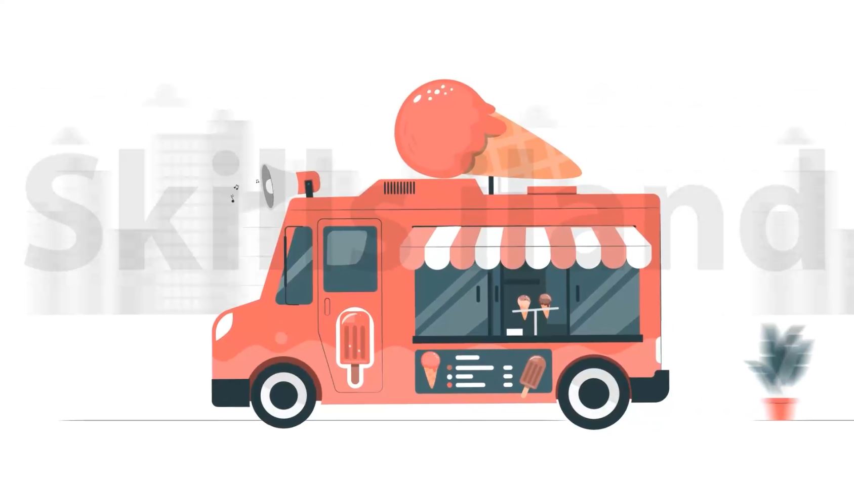 A red ice cream van is driving through the city. Created in Adobe After Effects 2020, the animation is in 1920 x 1080 resolution.